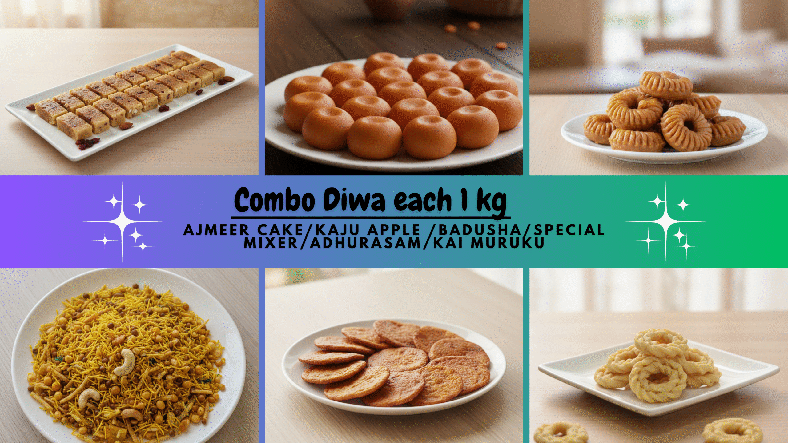 Ajmeer cake/Kaju Apple/Badusha/Spl Mixer/Adhurasam/Kai Muruku Each 1 kg